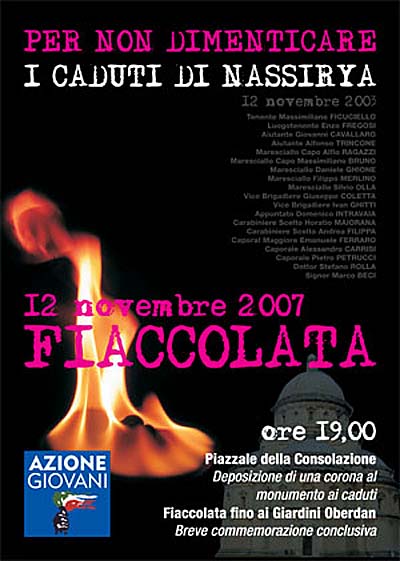 Alle 19 l’iniziativa del circolo cittadino di Azione Giovani: la commemorazione partirà dalla Consolazione per poi snodarsi fino ai giardini Oberdan