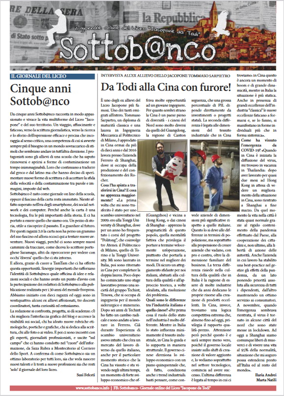 L’esperienza della redazione giornalistica dello “Jacopone”, che quest’anno festeggia i cinque anni, ha curato un inserto di due pagine all’interno del mensile TamTam di marzo