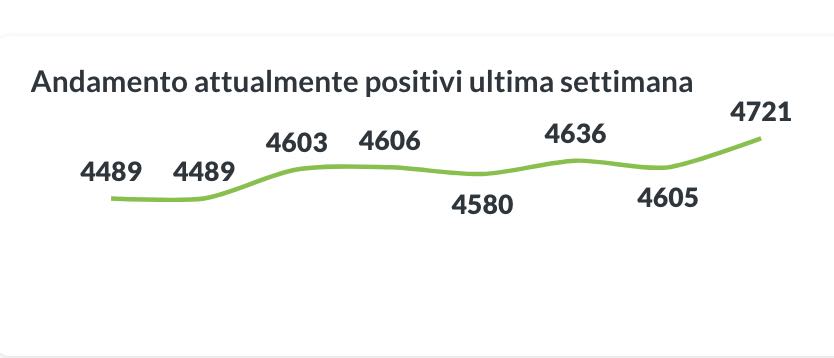 La curva degli attualmente positivi ha ripreso a crescere in maniera più consistente; i nuovi positivi sono 286 su 3.332 tamponi