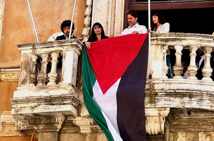 L’esposizione della bandiera è avvenuta al termine della prima riunione del Cantiere della Pace, presentato ufficialmente questa mattina durante una conferenza stampa