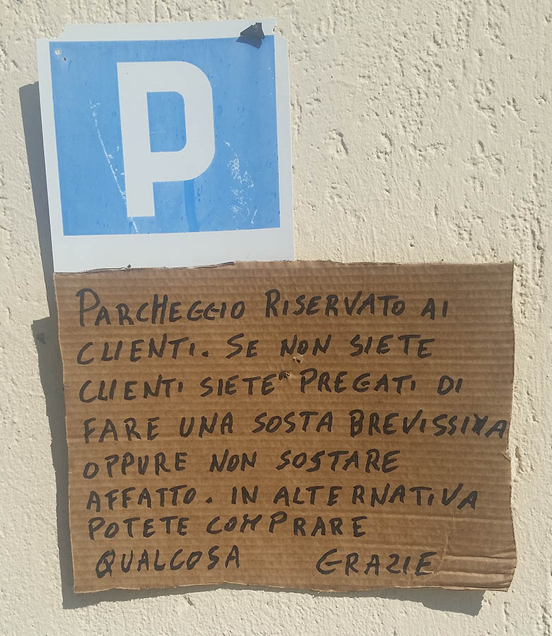 Burlesco e arguto cartello visibile all’esterno di un negozio massetano, evidentemente scritto dal gestore che, un po’ seccato dalle macchine in sosta di fronte al…